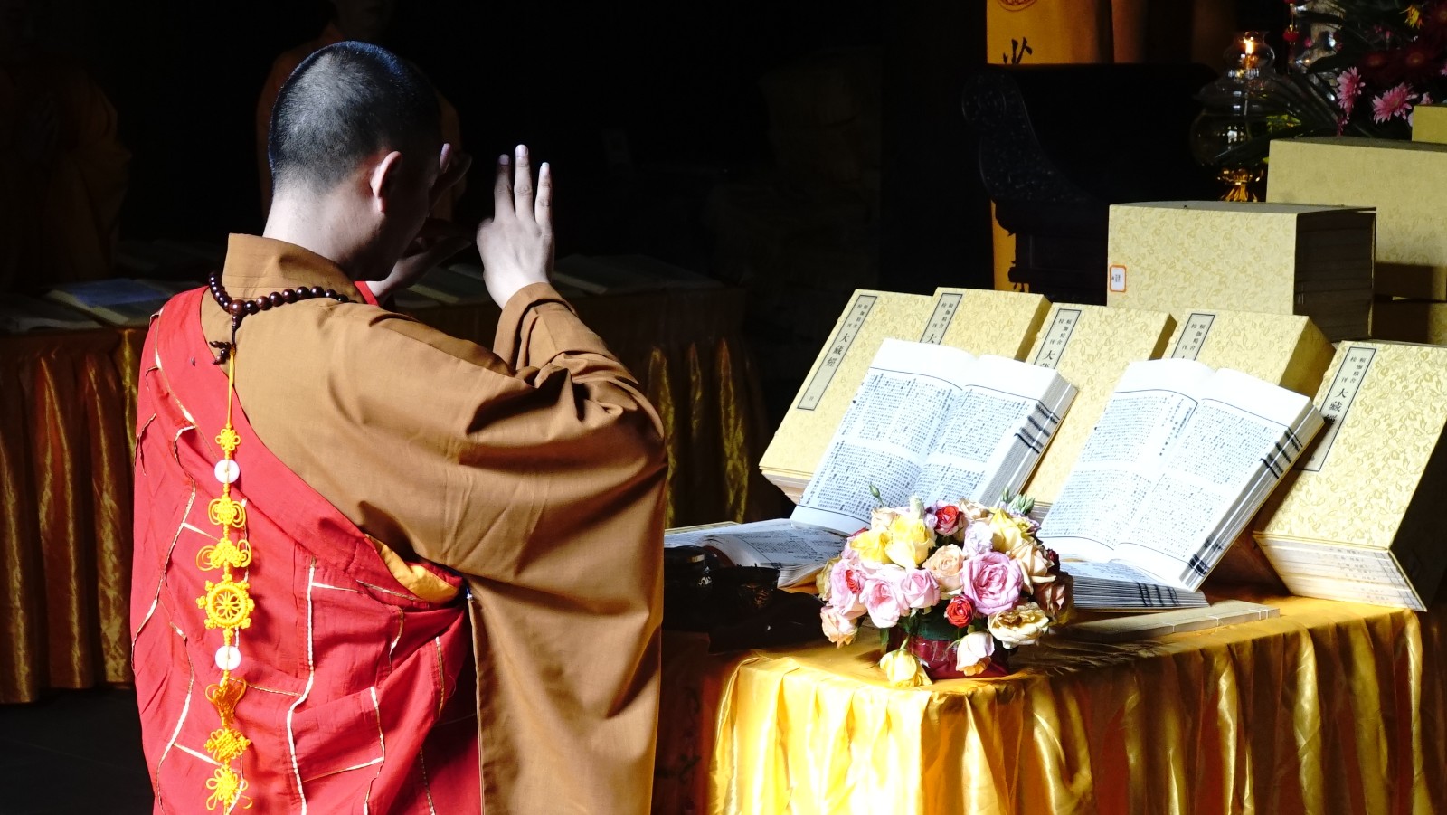 2021年7月15日,农历六月初六,为佛教中传统的晒经节。当天上午,少林寺僧众在藏经阁内诵经祈福,翻晒经典,激励僧众继承传统,深入三藏,获得般若智慧。
